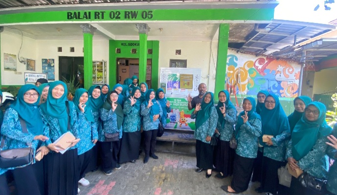 Gresik, Timurpos.co.id – Kampung SIBA KLASIK, Kelurahan Sidokumpul, menjadi tuan rumah kunjungan TP PKK Kelurahan Sidokumpul dalam kegiatan sosialisasi bertema Peningkatan Lingkungan Minim Sampah dan Bahaya Minyak Jelantah terhadap Kesehatan dan Lingkungan, Kelola Jelantah Menjadi Rupiah, Jum’at (19/9)