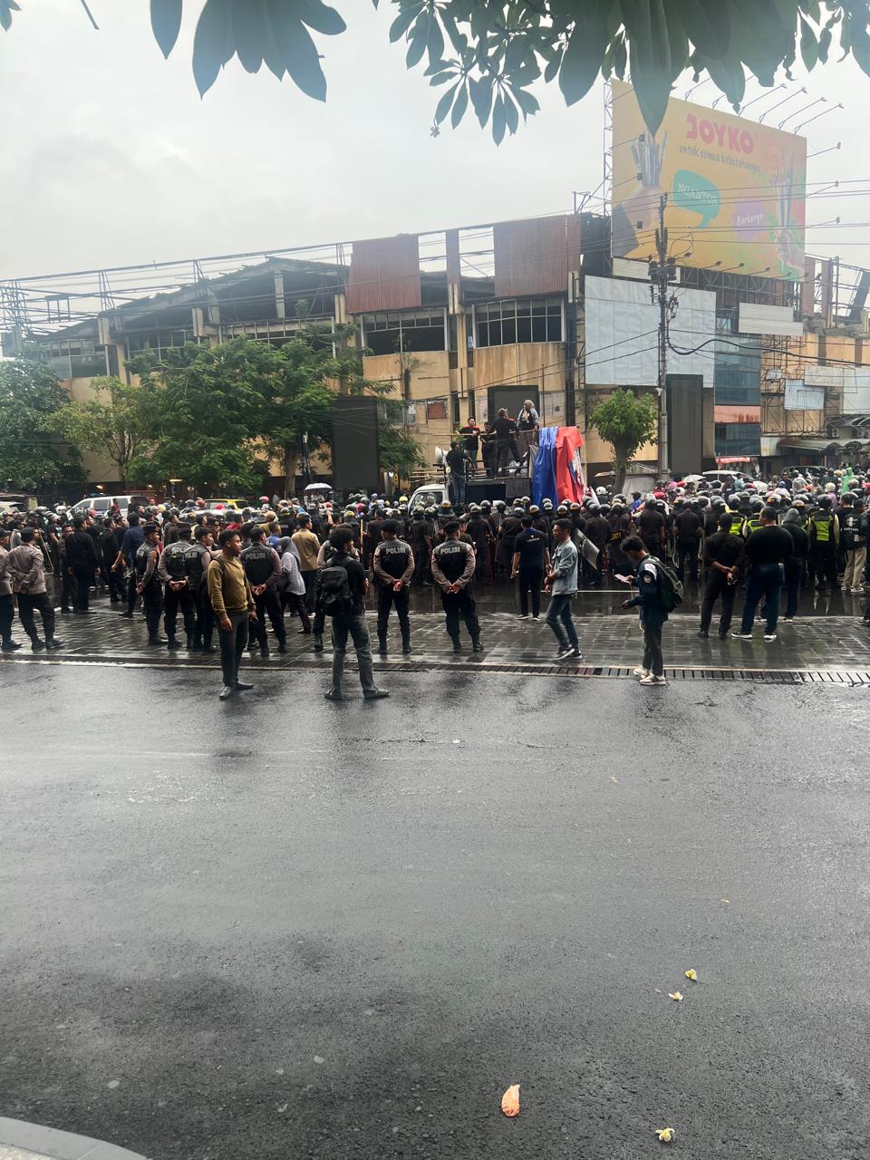 Para peserta aksi memadati depan TP 5 dan 6 Embong Malang Surabaya. Hal tersebut menyebabkan arus lalin tersendat hingga kawasan Basuki Rahmat dan Tunjungan Surabaya sekitar pukul 16.45 WIB.