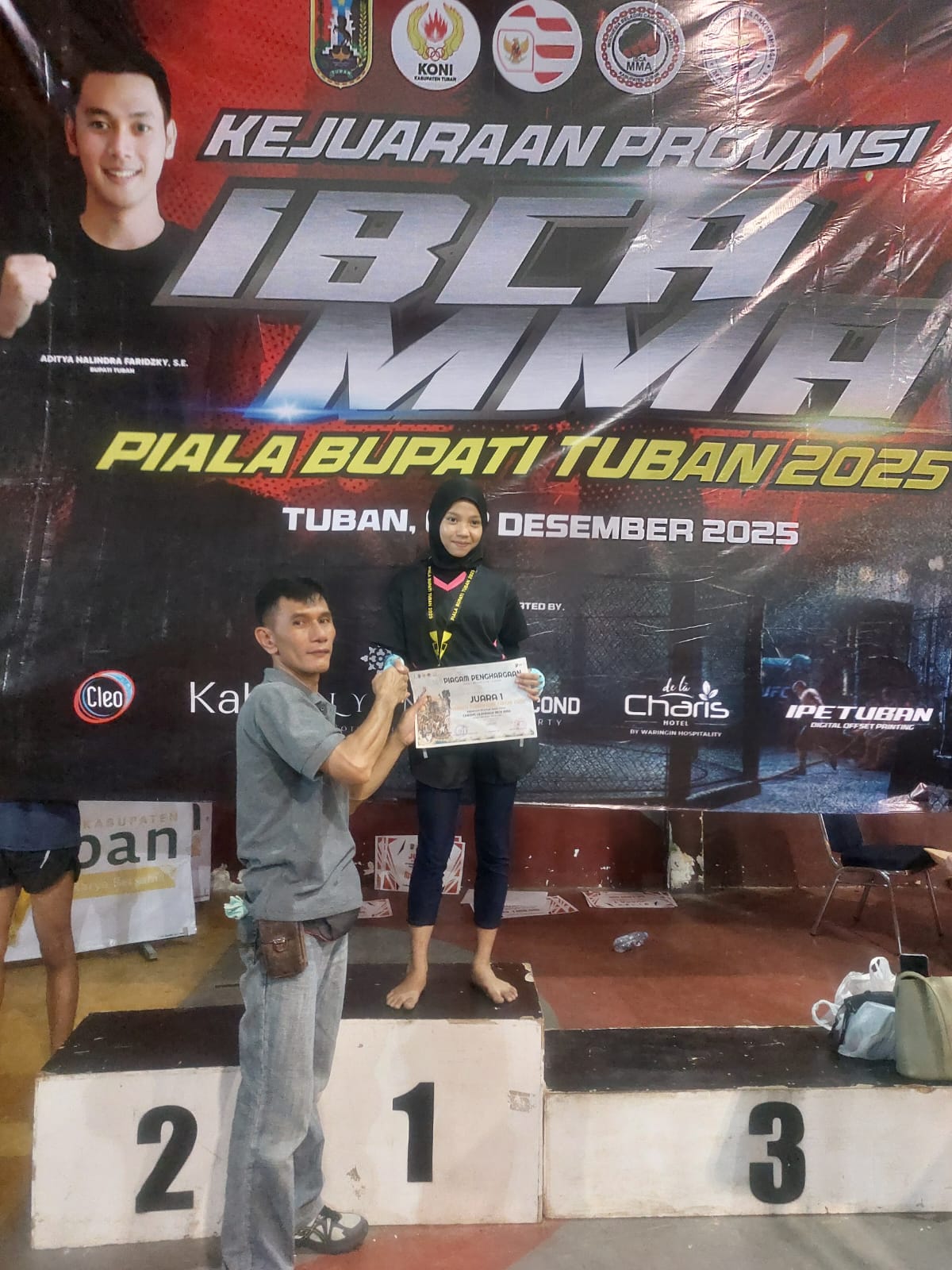 Tuban, Timurpos.co.id – Prestasi membanggakan kembali ditorehkan atlet Mixed Martial Arts (MMA) muda, Faradila Dwi Eliansyah Sitorus, yang berhasil meraih Juara 1 dalam ajang Kejuaraan Provinsi (Kejurprov) IBCA MMA Piala Bupati Tuban 2025. Kejuaraan tersebut digelar di Tuban pada Desember 2025 dan diikuti oleh atlet-atlet terbaik dari berbagai daerah.