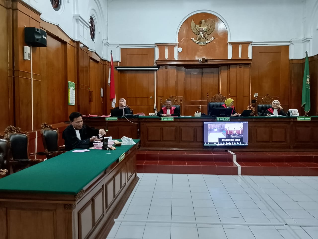 Terpisah terkait tidak dihadirkan Terdakwa dimuka sidang,” Bahwa Terdakwa lagi sakit dan posisi sekarang tetap di dalam rutan,” Jelas JPU Suparlan