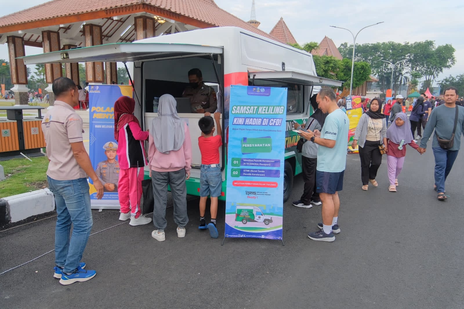 Warga yang memanfaatkan layanan Samsat Keliling mengaku sangat terbantu dengan adanya pelayanan di lokasi CFD. Selain menghemat waktu, mereka juga merasa lebih nyaman karena pelayanan dilakukan di ruang terbuka dengan suasana santai dan ramah.