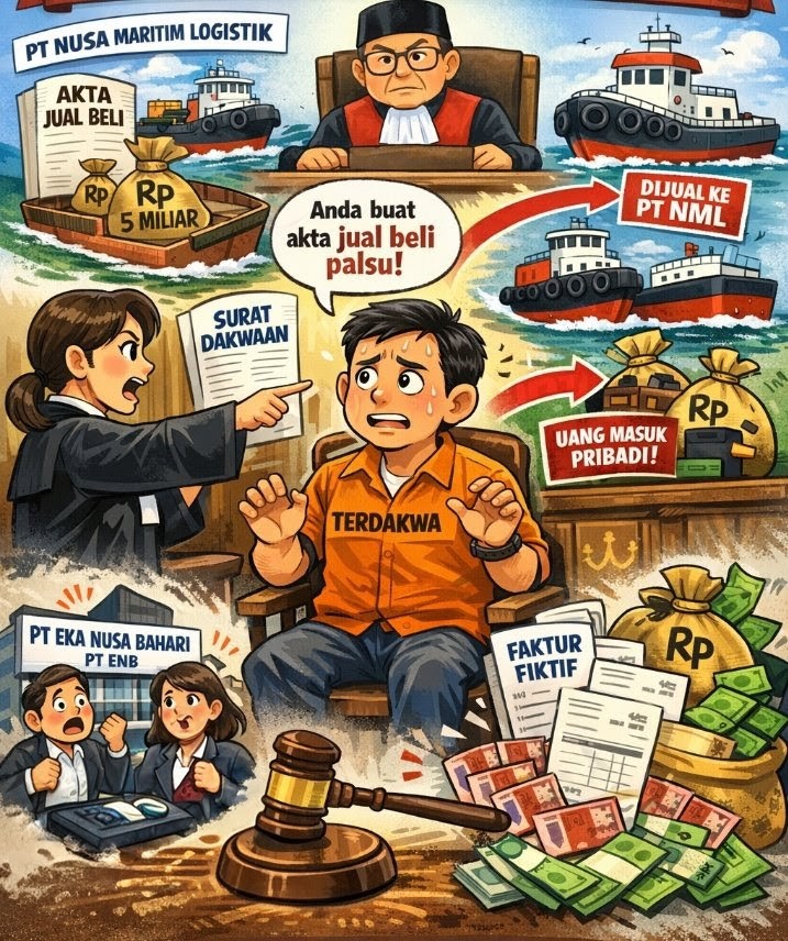 Meski demikian, pada 12 Oktober 2020, terdakwa diduga tetap melakukan transaksi jual beli dua unit kapal milik PT ENB kepada PT NML, perusahaan yang juga dikendalikannya sendiri. Transaksi tersebut dituangkan dalam dua akta jual beli yang dibuat di hadapan notaris di Surabaya.