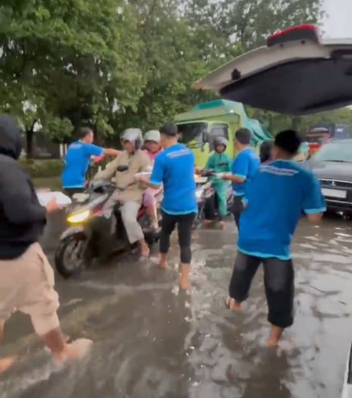 Sebanyak 500 kotak nasi dibagikan kepada para pengguna jalan, pekerja pelabuhan, pengemudi ojek online, serta warga sekitar yang melintas menjelang waktu berbuka puasa.
