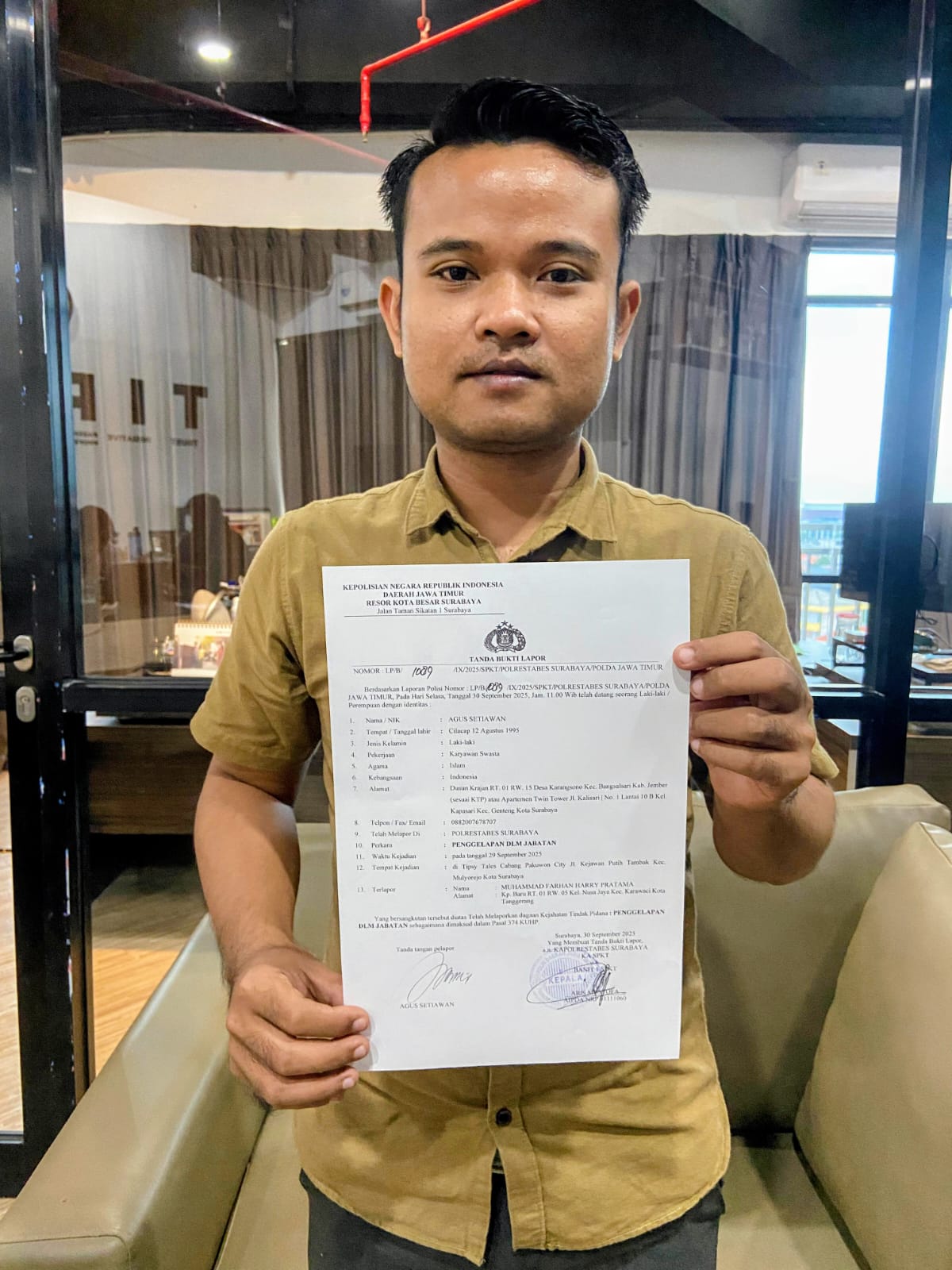 Kasus ini sudah dilaporkan ke Polrestabes Surabaya. Identitas pelaku telah dikantongi dan polisi kini tengah melakukan pengejaran. Tok